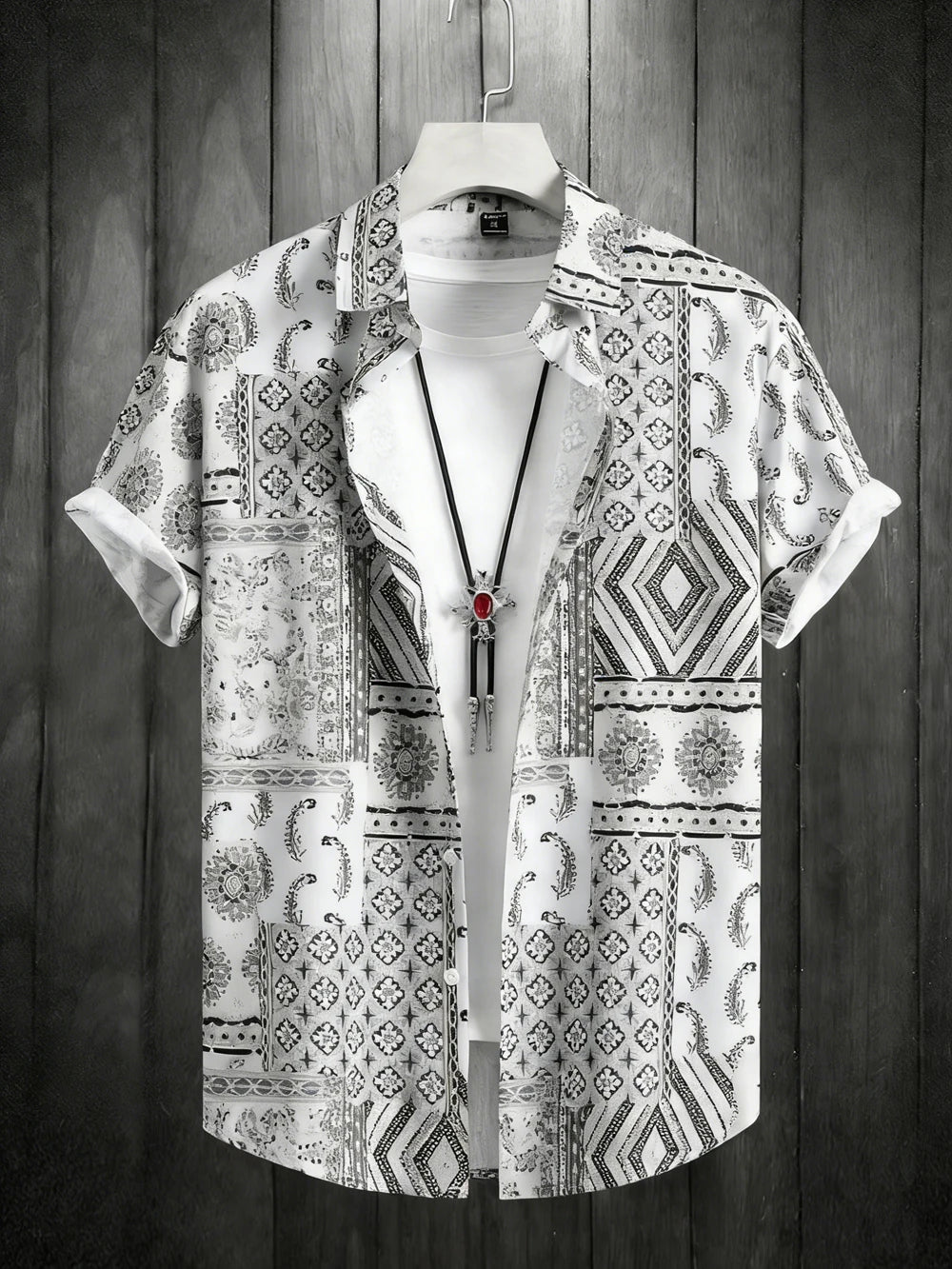 Chemise d'été pour homme 2026 à manches courtes imprimée, chemise col rétro tendance pour homme, haut décontracté hawaïen pour la plage, tailles XS-5XL