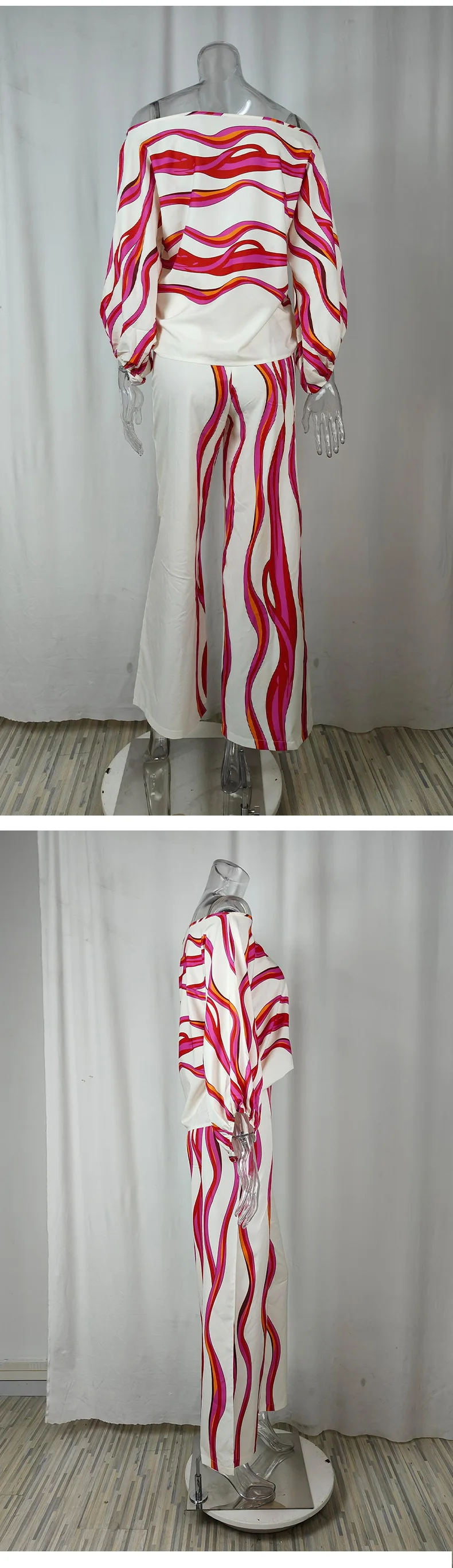 Ensemble femme en satin 2 pièces, haut à manches lanterne épaules dénudées, pantalon à jambes larges, chemise de bureau élégante