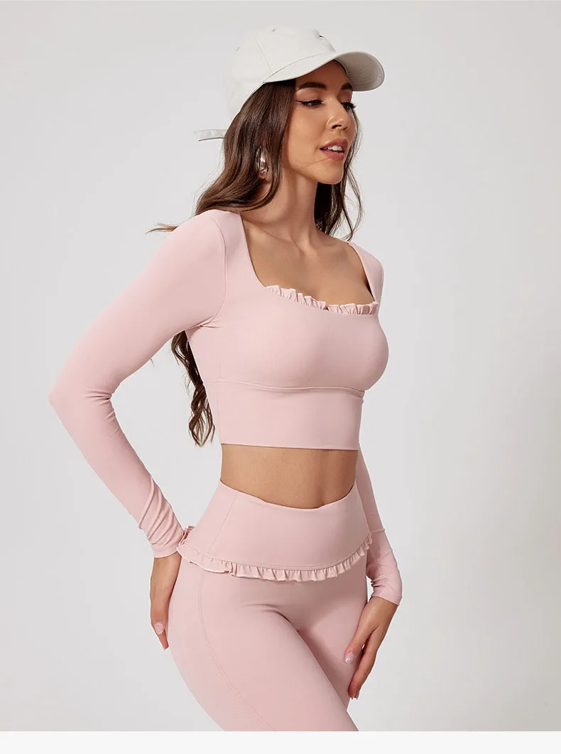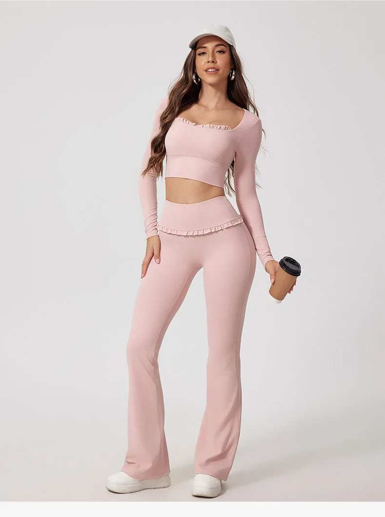 Vêtements à logo personnalisé Y2k Mode de luxe tendance Séchage rapide Hauts en dentelle élastique & Pantalons Y2k Ensembles de yoga Tenue de détente Doux Ensemble 2 pièces pour femmes